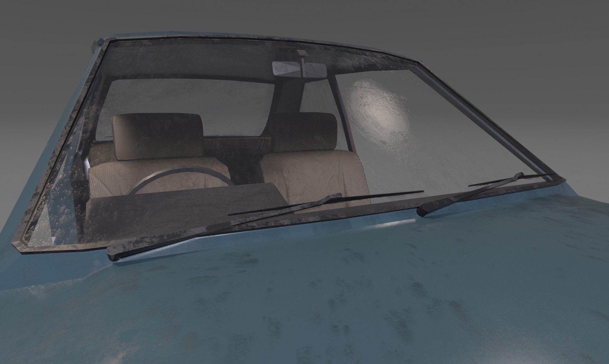 I decided to put my newly acquired Blender skills to the test by having a go at make a vehicle for use in game. I tried to take account of the fact that the prop would be reused for non-interactive scene dressing, so It's not the highest poly model. I'll likely do much higher quality models for the hero vehicles in the game - especially as I have a plan for a mechanic that allows players to sleep in abandoned cars.