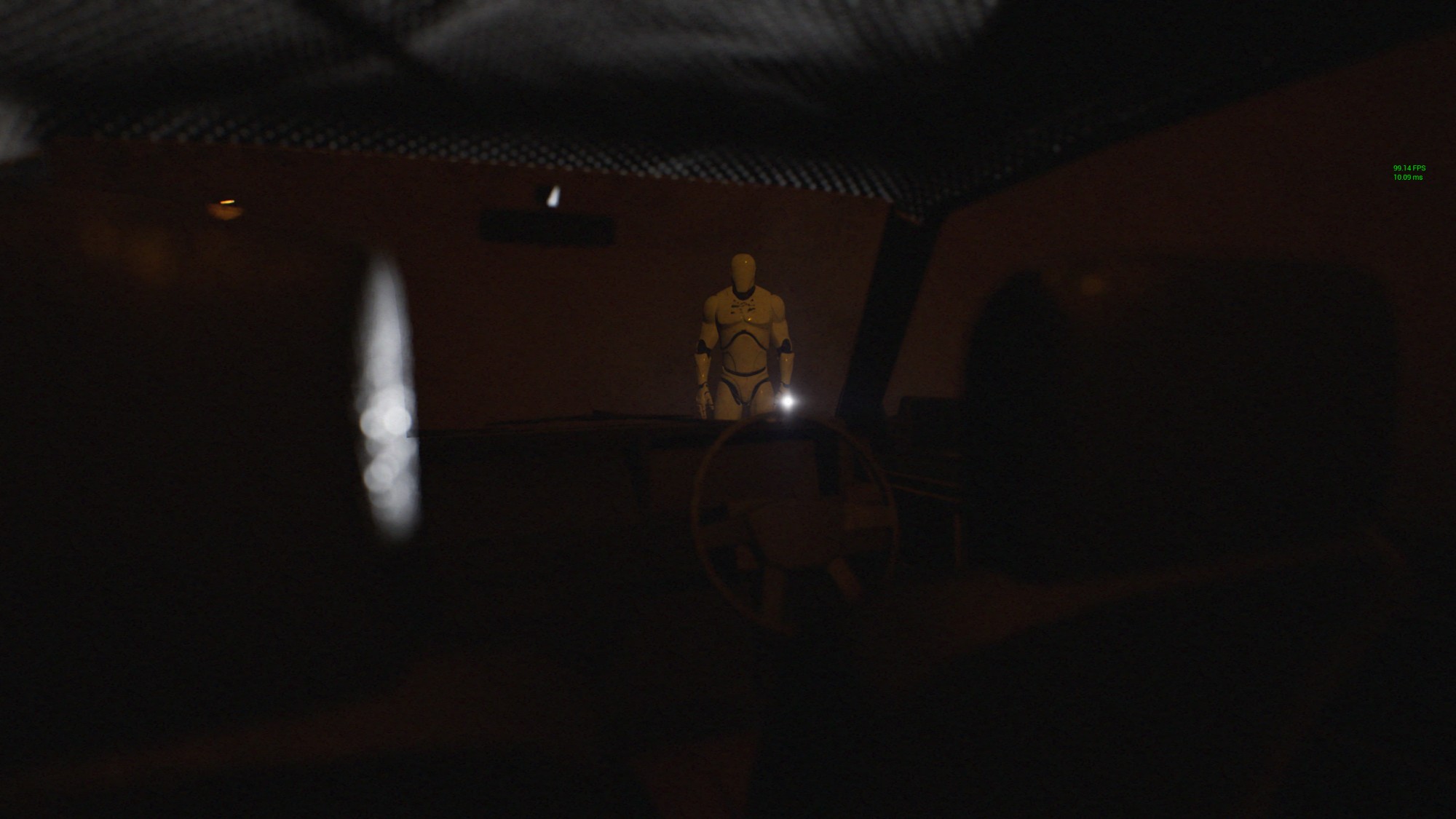 I went through a lot of trial an error trying to figure out how to make the components of the car interactive when in game. I ended up exporting separate meshes of the doors / body / wheels into Unreal, then using a blueprint to unite the all. The blueprint allows me to use the car model as a static prop. I can set the doors to be left open or shut, turn the front wheels and I went the extra mile and programmed a line trace that, once you've positioned the car body, will find the ground and position the wheels accordingly. This helps give the impression that the car is sitting on its suspension in an irregular way.