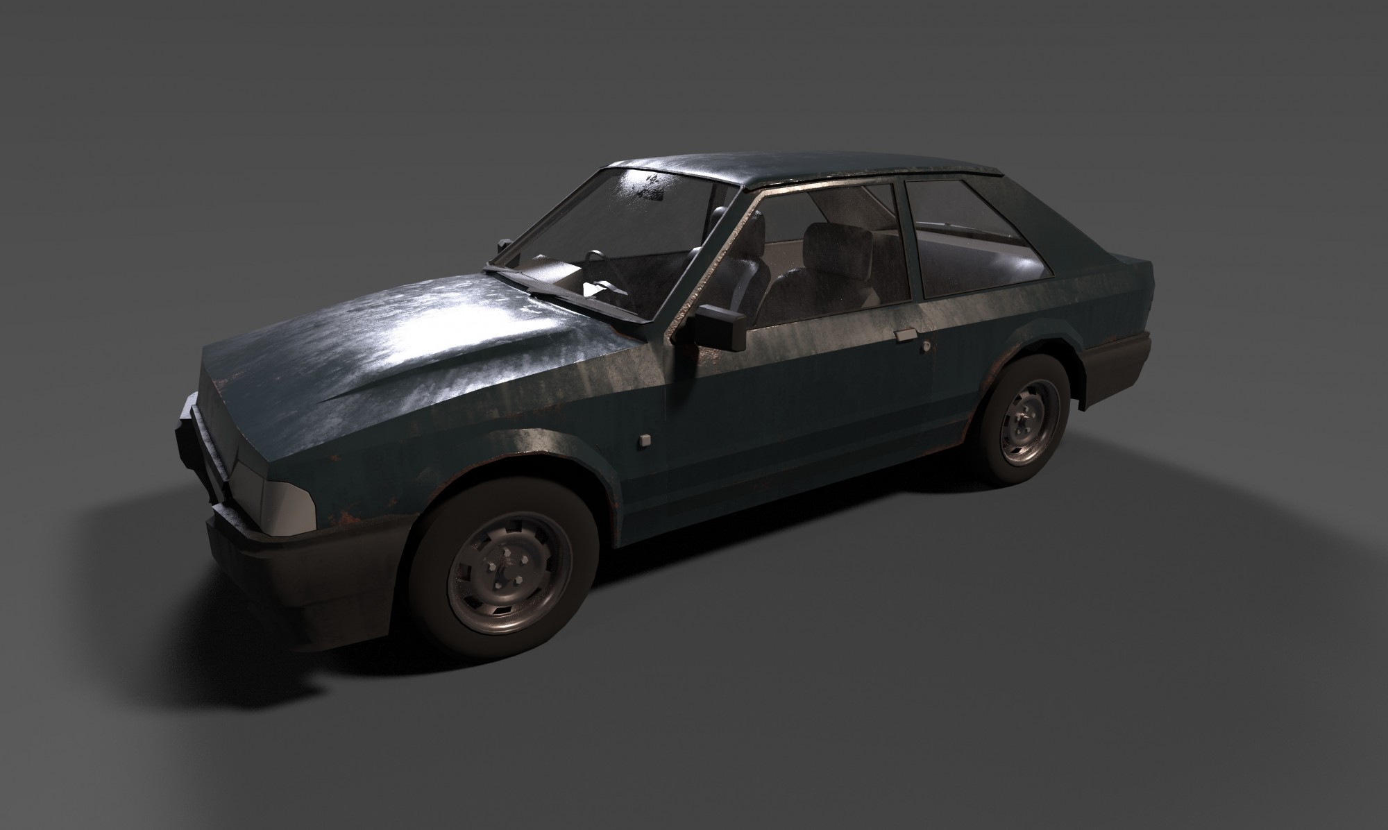I decided to put my newly acquired Blender skills to the test by having a go at make a vehicle for use in game. I tried to take account of the fact that the prop would be reused for non-interactive scene dressing, so It's not the highest poly model. I'll likely do much higher quality models for the hero vehicles in the game - especially as I have a plan for a mechanic that allows players to sleep in abandoned cars.